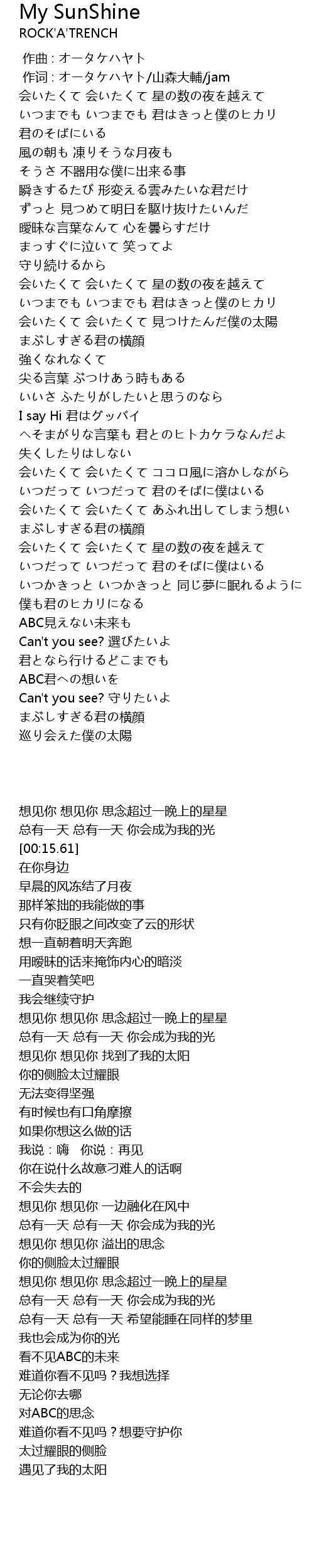 | [03:39.39] | 巡り会えた僕の太陽 |