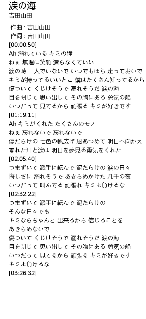 | [02:58.13] | 傷ついて くじけそうで 溺れそうだ 涙の海 |
