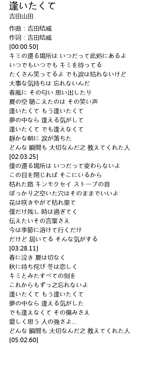| [04:20.94] | 逢いたくて もう逢いたくて |