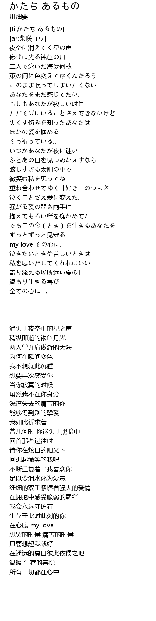 | [02:11.520] | 重ね合わせてゆく「好き」のつよさ |