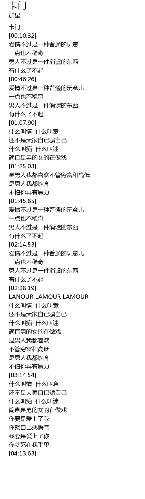 | [02:30.75] | LANOUR LAMOUR LAMOUR |