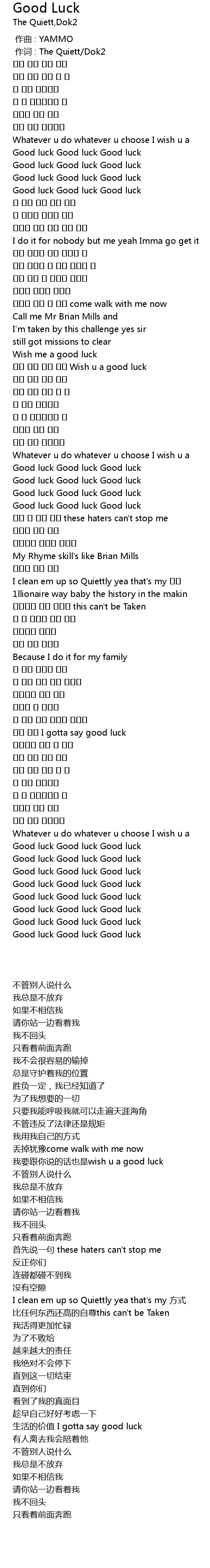 | [00:01.00] | zuò cí : The Quiett Dok2 |