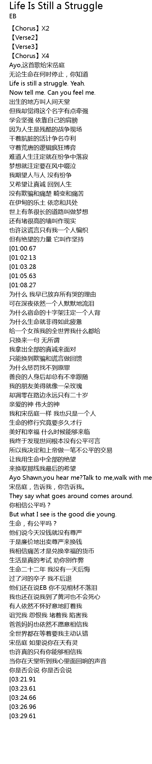 | [01:10.75][01:00.67] | Life is Still a struggle |