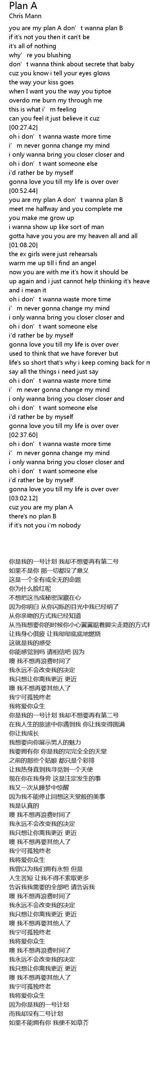 | [00:55.44] | you are my plan A don' t wanna plan B |