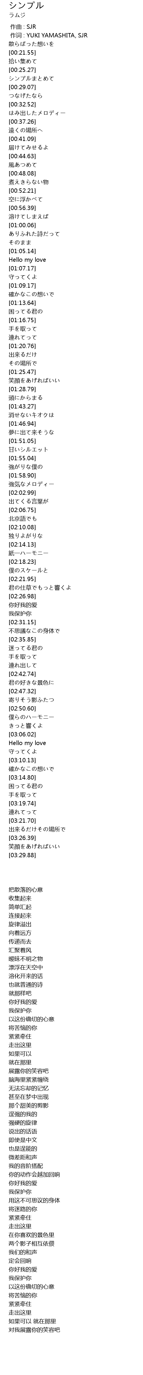 | [00:01.00] | 作词 : YUKI YAMASHITA, SJR |