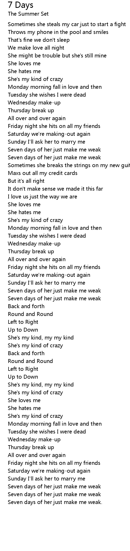 Seven days of her just make me weak |