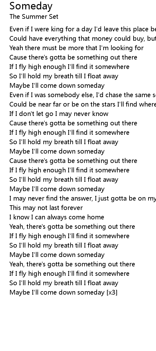 Maybe I'll come down someday [x3] |