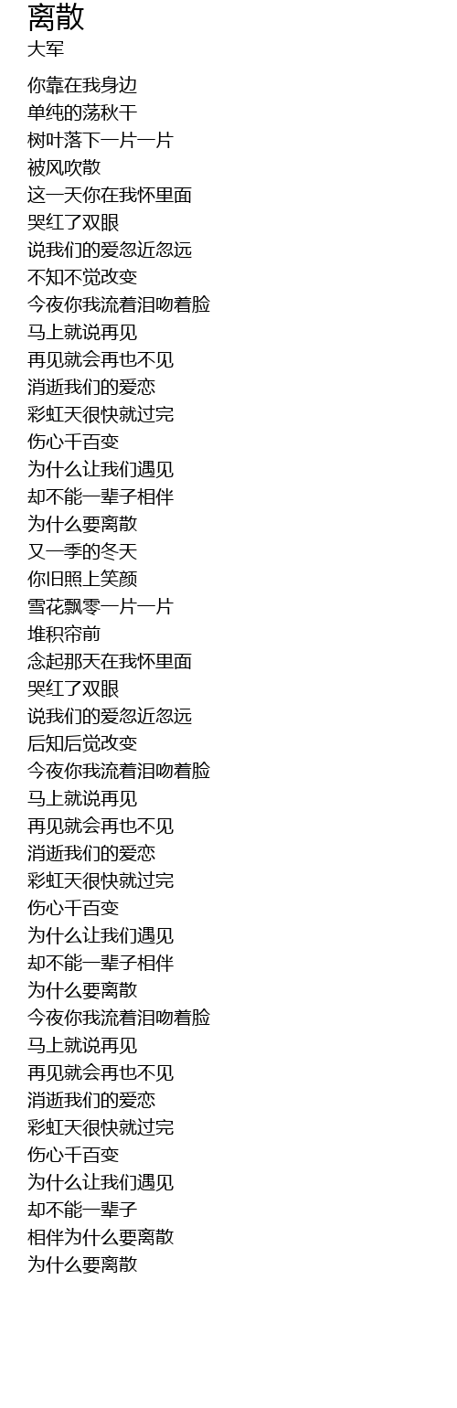 | [03:43.35] | xiāng bàn wèi shí me yào lí sàn |