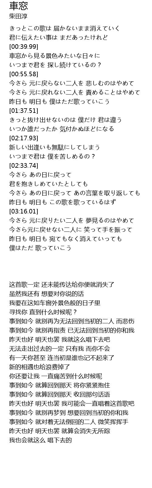| [00:40.62] | chē chuāng jiàn jǐng sè rì |