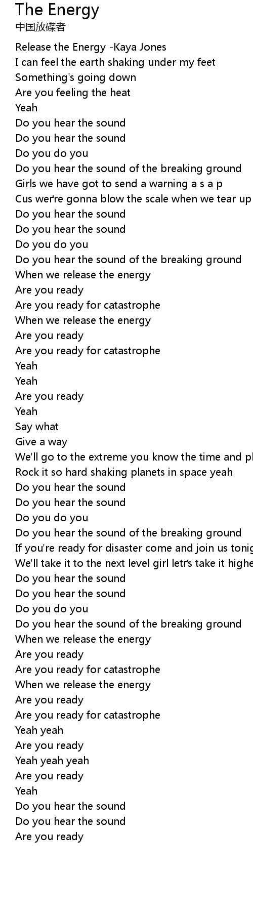| [00:01.580] | Release the Energy Kaya Jones |