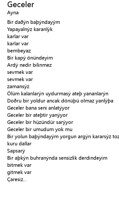 | Bir yolun baþýndayým yorgun argýn kararsýz tozlar var | |