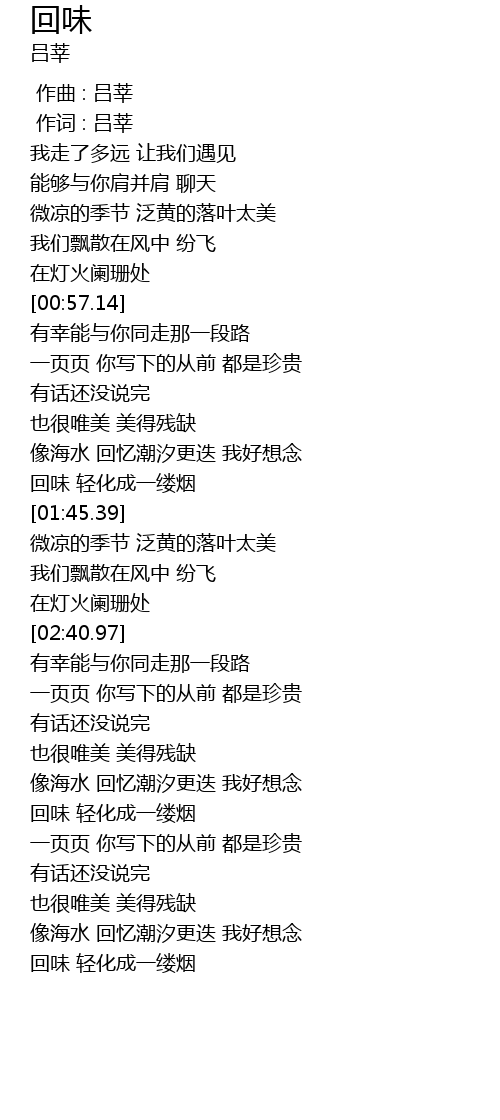 | [01:38.84] | 回味 轻化成一缕烟 |