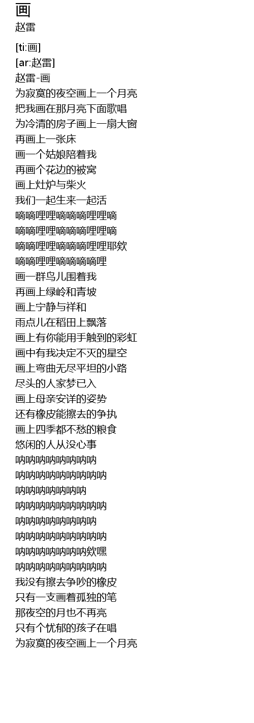 | [00:01.152] | 赵雷-画 |