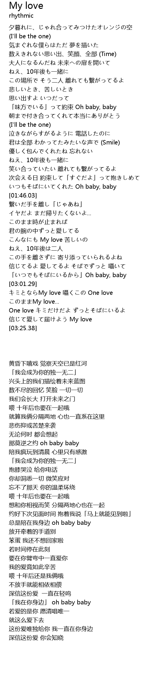 | [03:02.36] | My love nie One love |