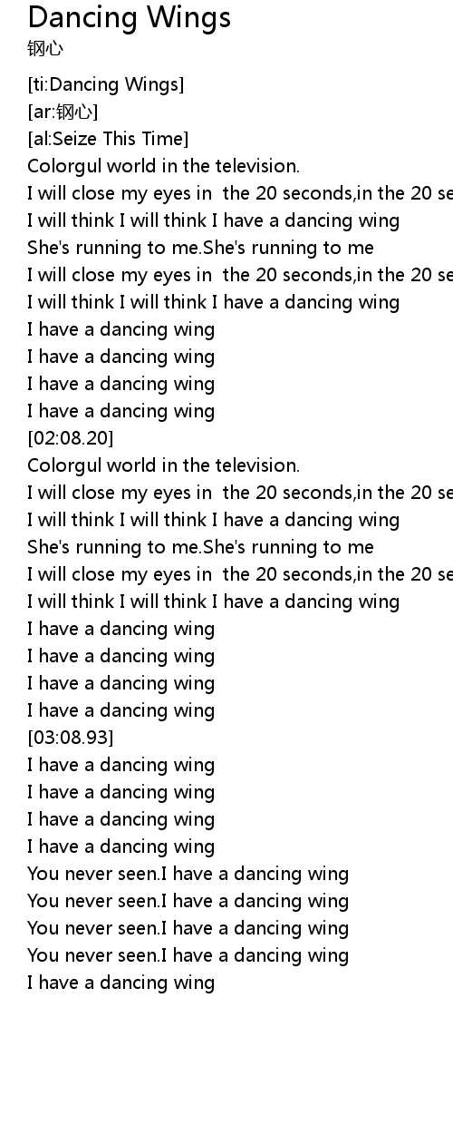 | [02:40.32] | I will think I will think I have a dancing wing |