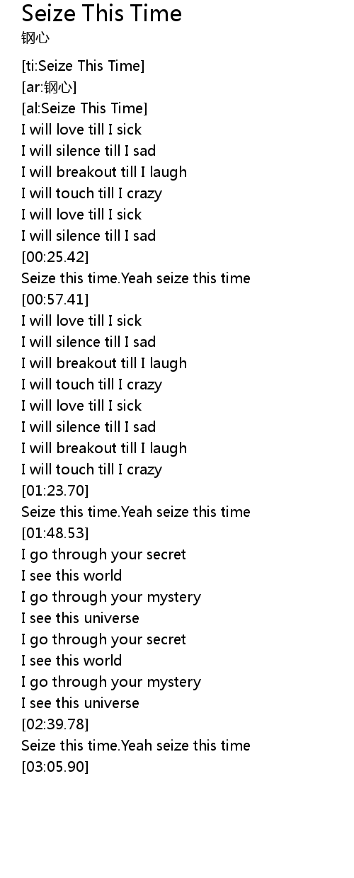 | [01:23.72] | Seize this time. Yeah seize this time |