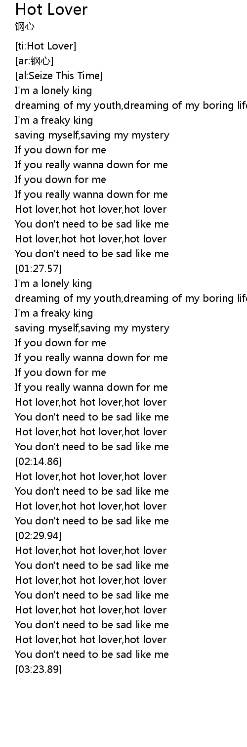 | [02:53.75] | Hot lover, hot hot lover, hot lover |