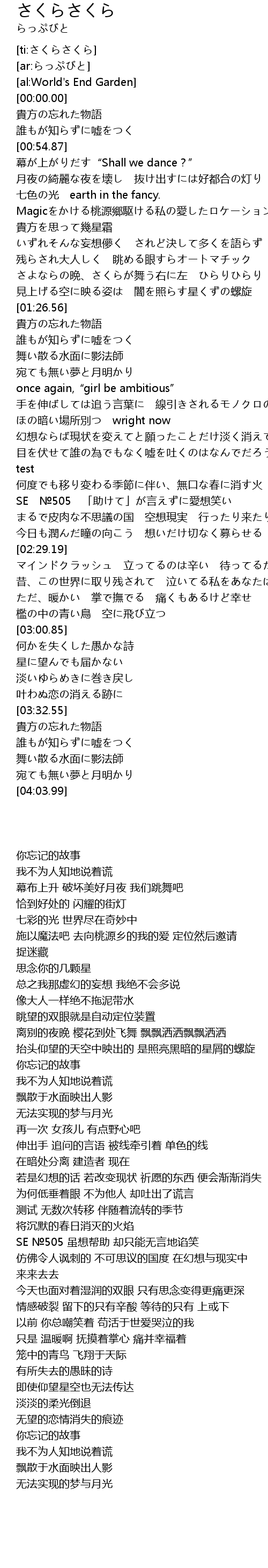 | [03:04.66] | 何かを失くした愚かな詩 |