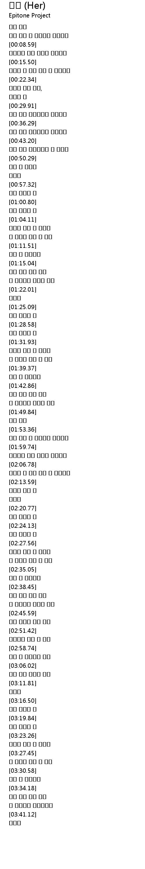 | [03:21.61] | 내가 부르는 널 |