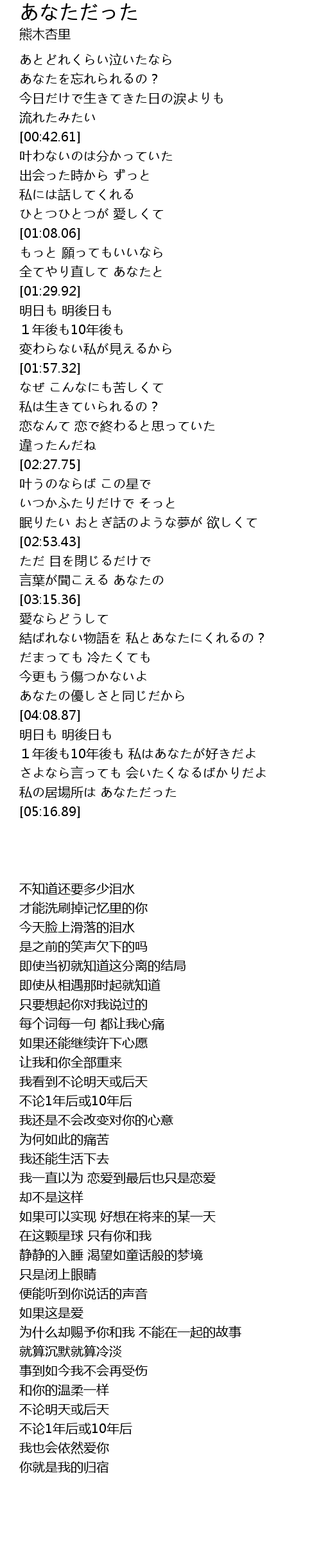 | [05:02.62] | 私の居場所は あなただった |