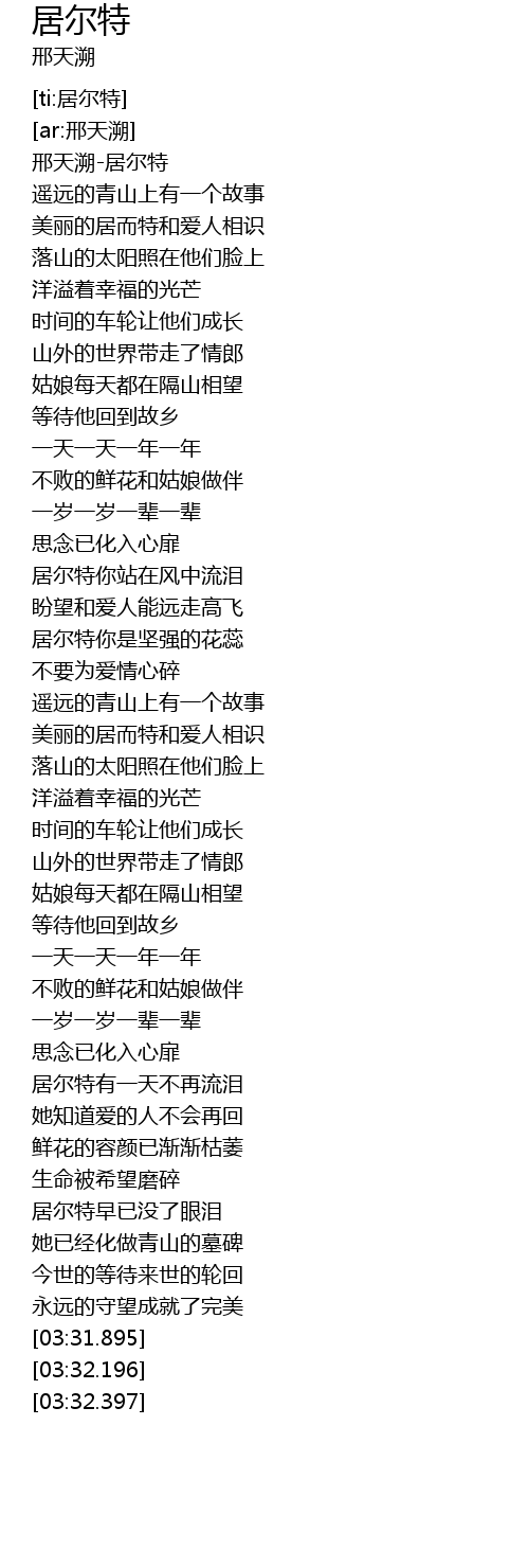 | [02:56.367] | 居尔特有一天不再流泪 |