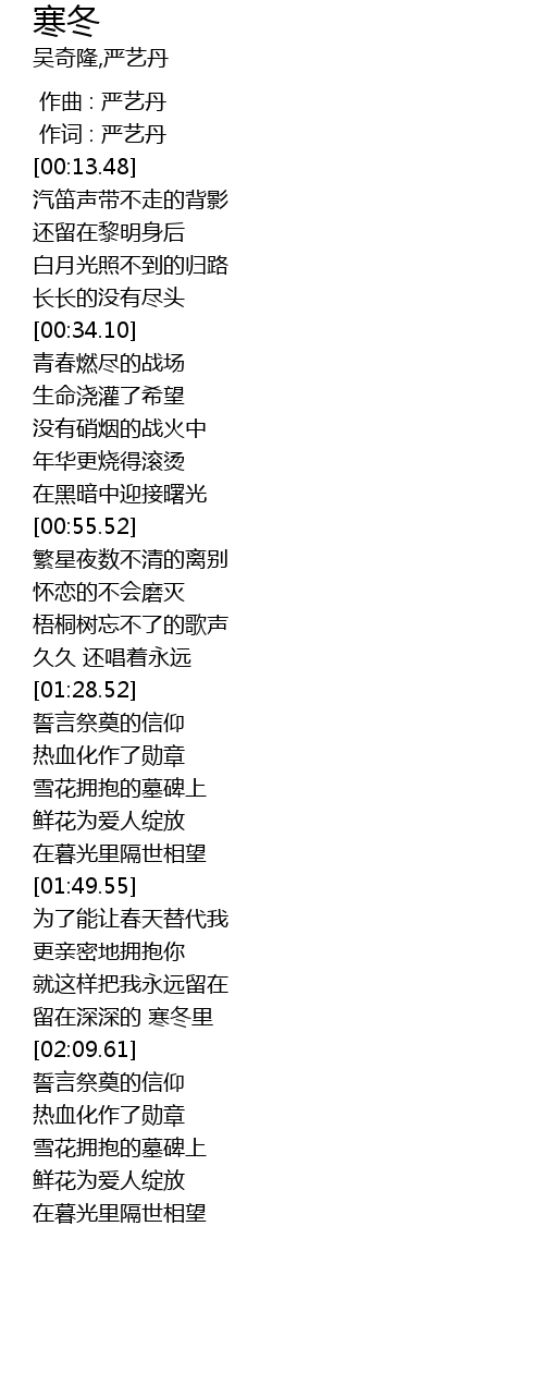 | [02:02.85] | 留在深深的 寒冬里 |