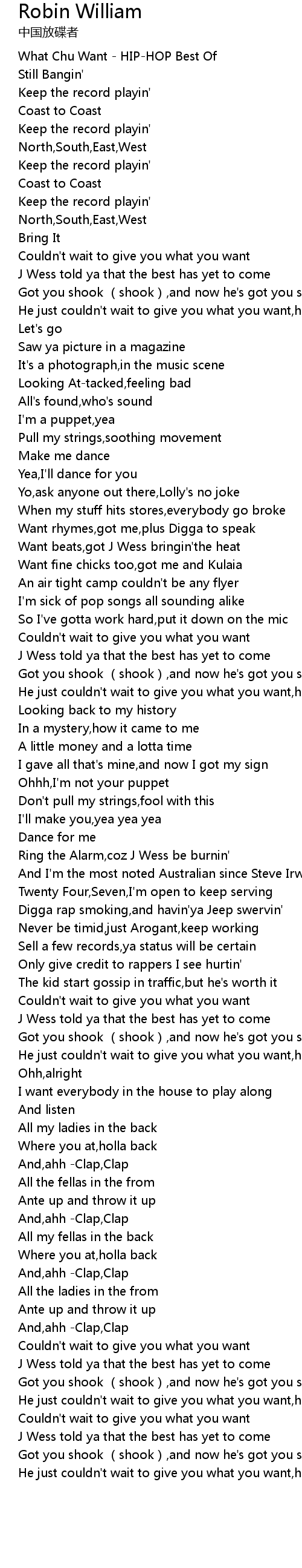 | [00:00.100] | What Chu Want HIPHOP Best Of |