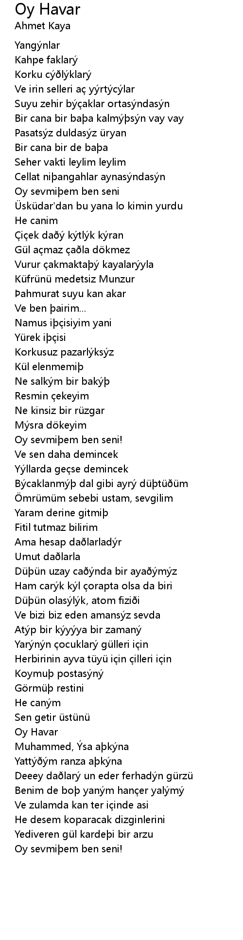 | Bir cana bir baþa kalmýþsýn vay vay | |