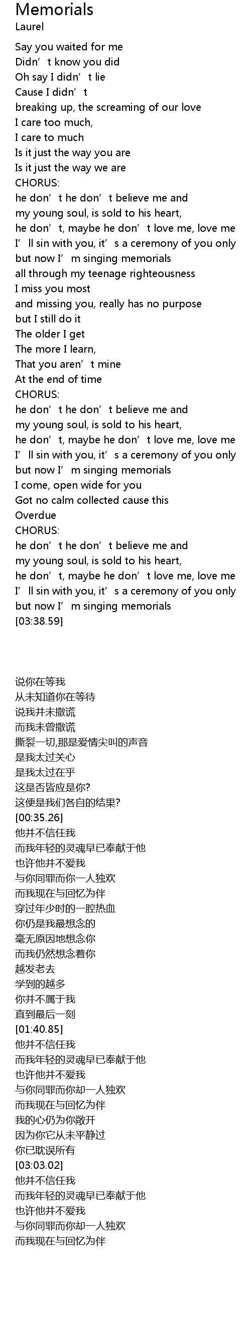 | [02:19.38] | but now I' m singing memorials |