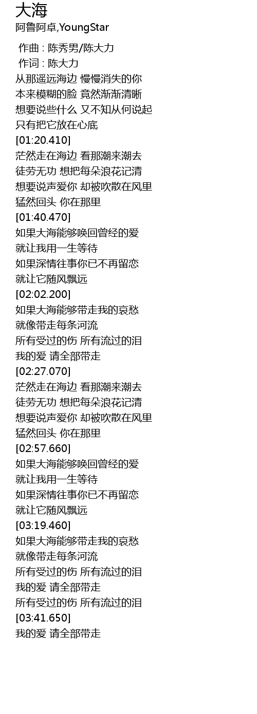 | [00:01.00] | 作词 : 陈大力 |