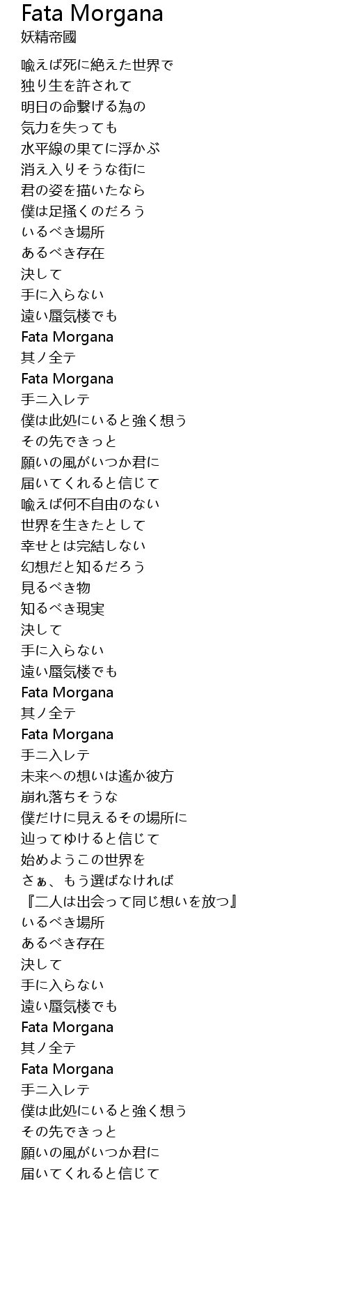 | 歌曲 | Fata Morgana |