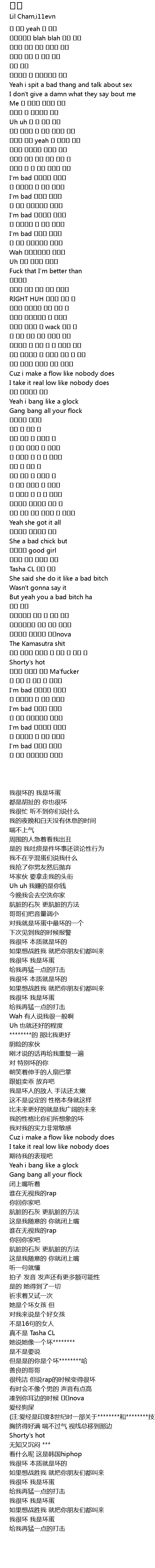 | [00:23.264] | Yeah i spit a bad thang and talk about sex |