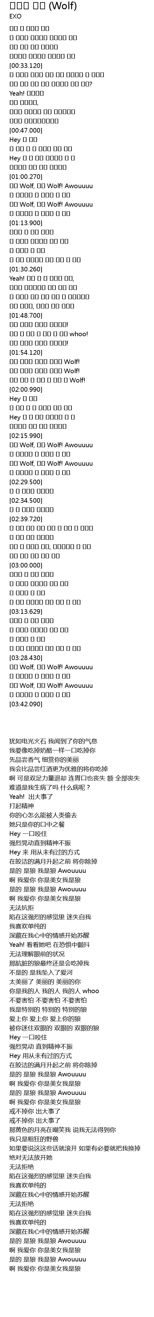 | [01:57.680] | 그대 사랑한 사랑한 사랑한 Wolf! |