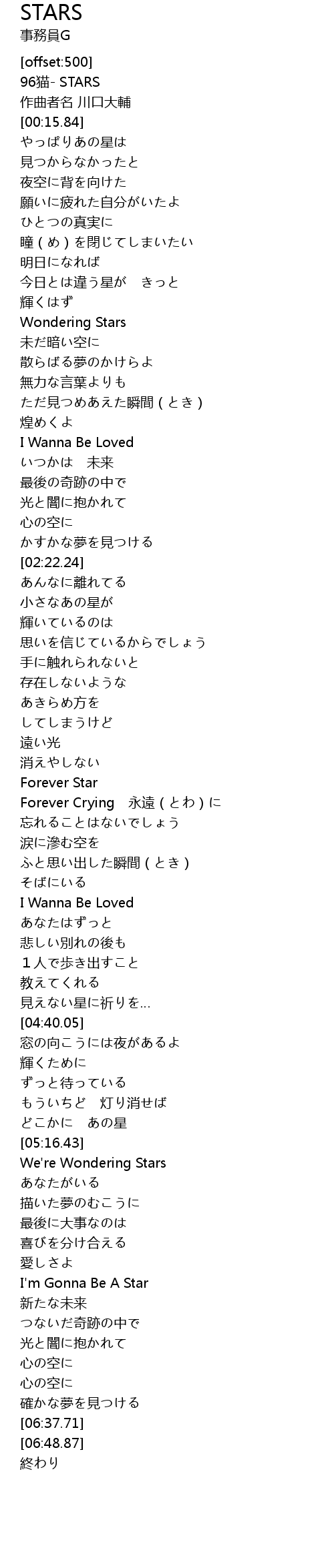 | [00:00.00] | 96 māo STARS |