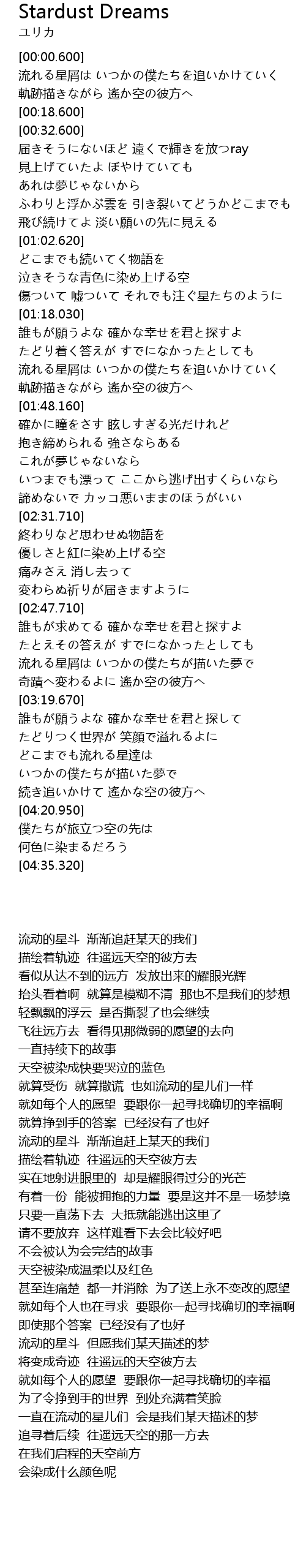 | [00:01.800] | 流れる星屑は いつかの僕たちを追いかけていく |