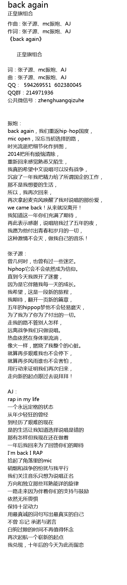 | 词:张子源、mc振炮、AJ | |