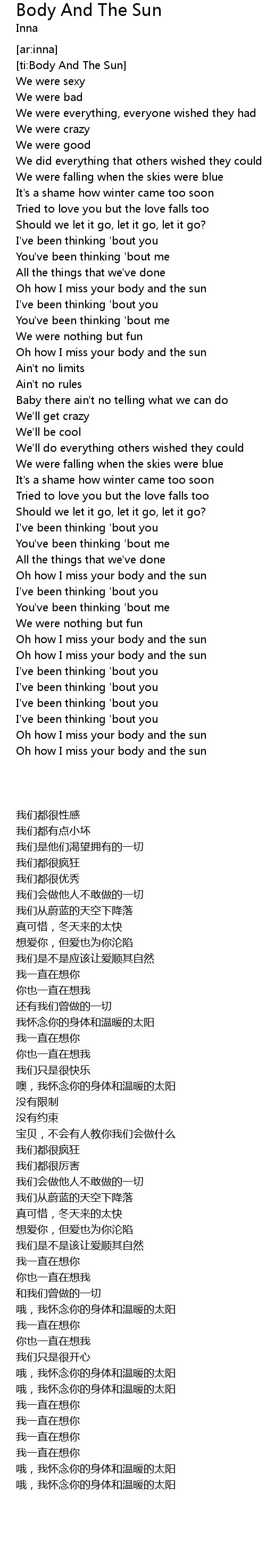 [ti:Body And The Sun] |
