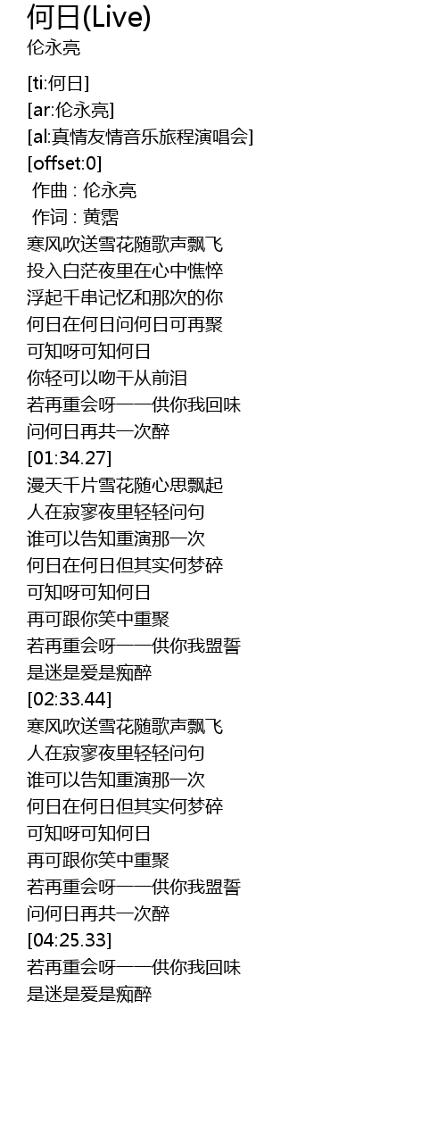 | [01:58.31] | 何日在何日但其实何梦碎 |