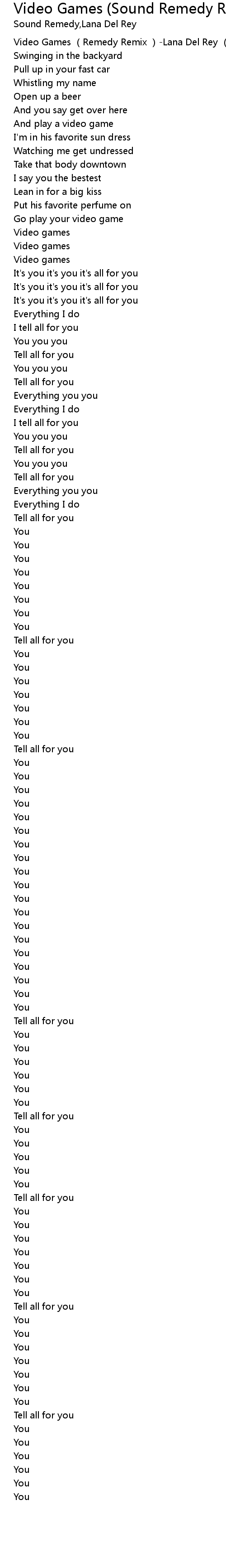| [00:00.00] | Video Games (Remedy Remix )-Lana Del Rey (娜·德雷) |