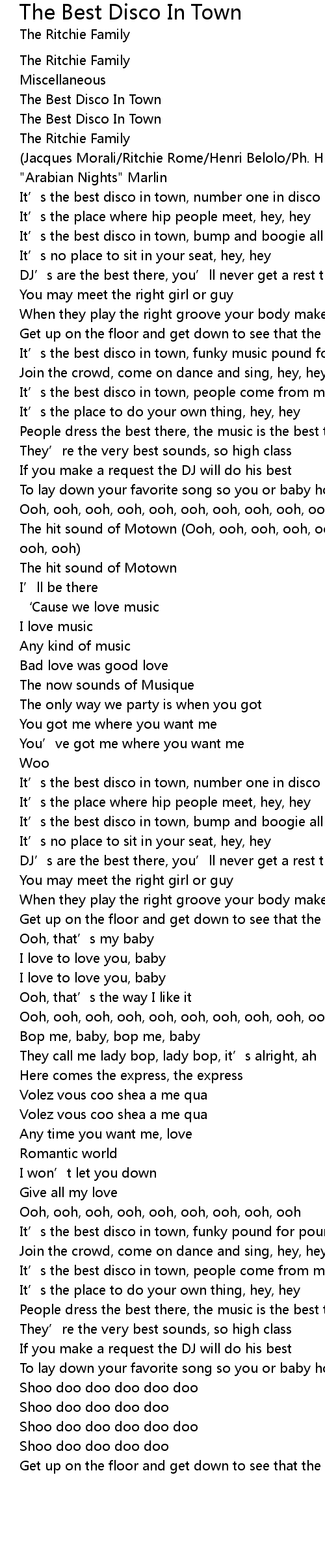 | 专辑 | The Best Of The Ritchie Family - Best Disco In Town |