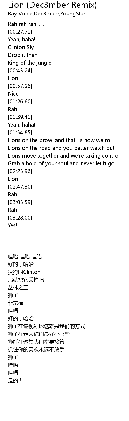| [02:07.79] | 狮子在走来你们最好小心些 |