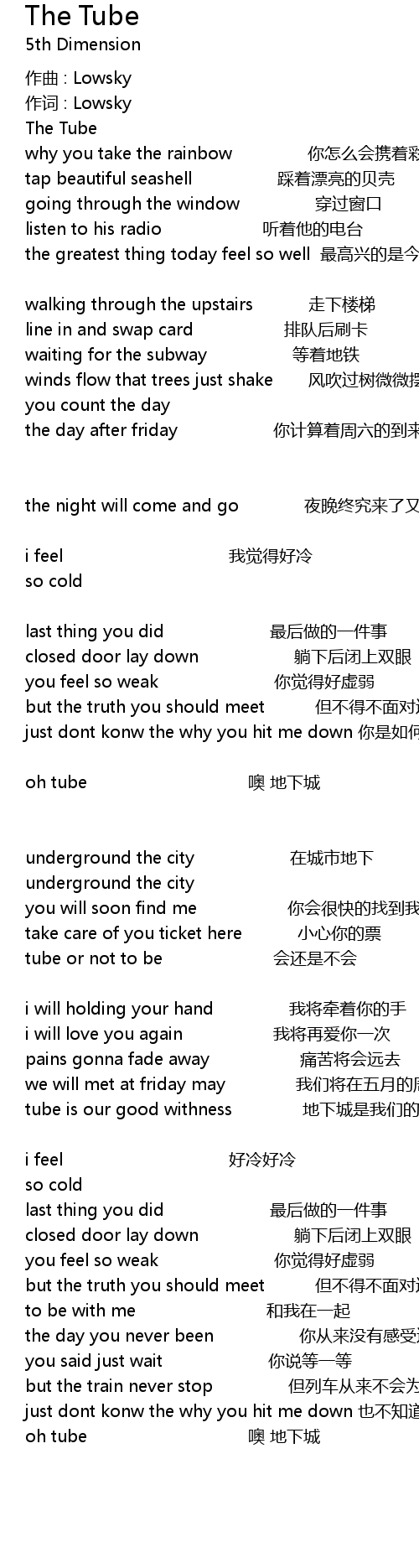 | tube is our good withness 地下城是我们的见证者 | |