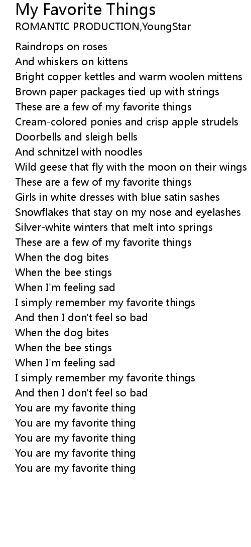 | [00:39.43] | These are a few of my favorite things |