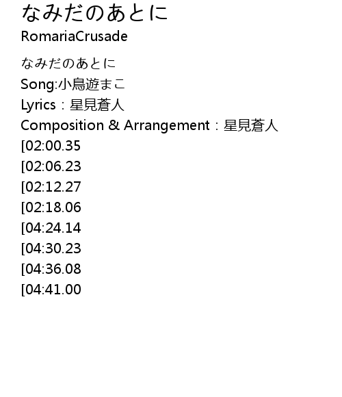 | [02:53.97][04:30.23] | なみだのあとで笑おうよ |