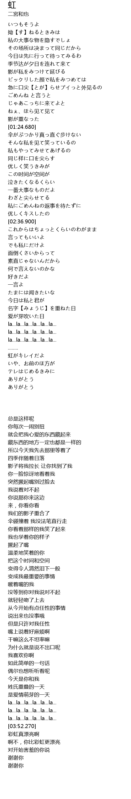 | [03:55.710] | 虹がキレイだよ |