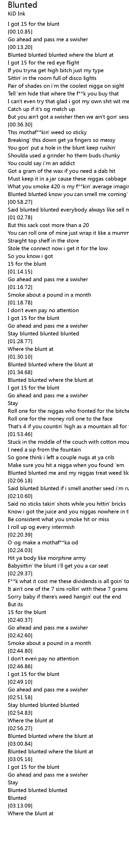 Said blunted blunted if i smell another seed i'm runnin' |
