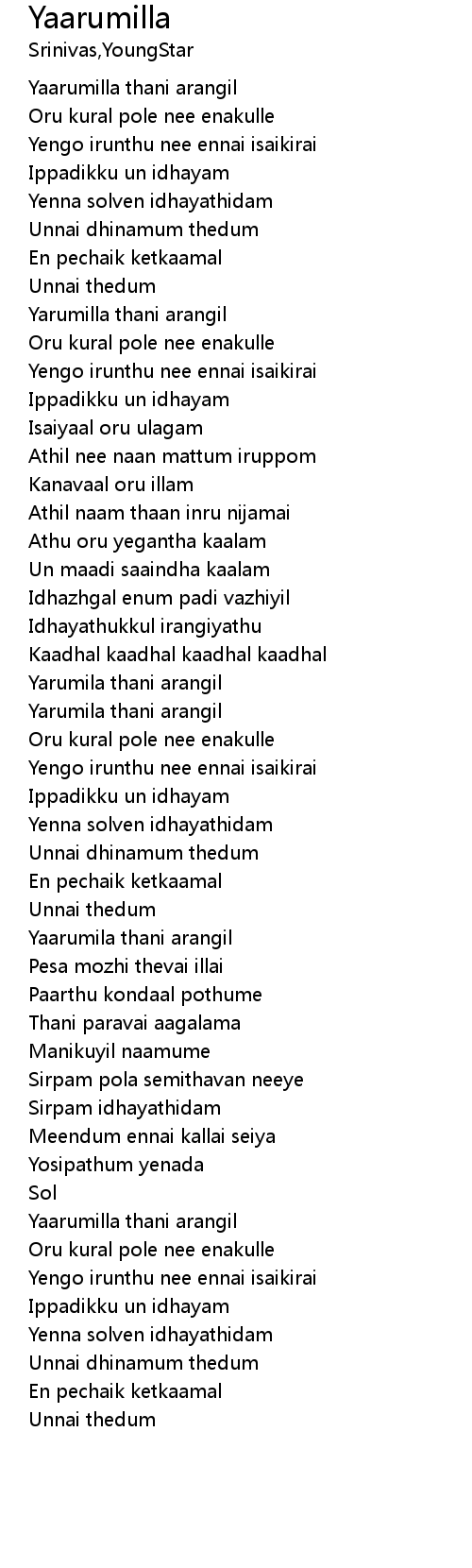 | [01:58.51] | Kaadhal kaadhal kaadhal kaadhal |