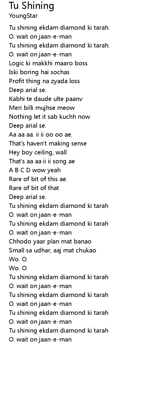 Tu shining ekdam diamond ki tarah |