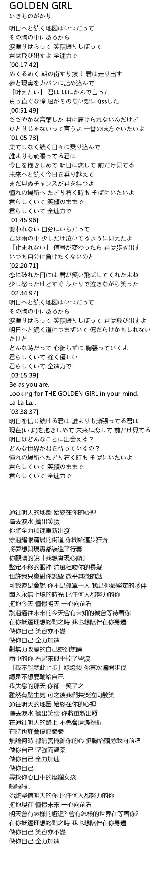 | [03:25.43] | 尋找你心目中的燦爛女孩 |