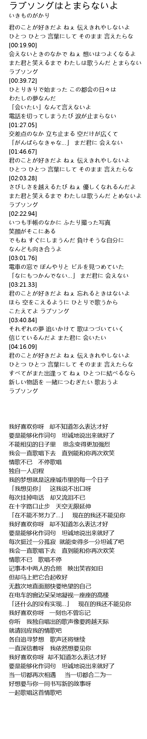 | [04:45.89] | 新しい物語を 一緒につむぎたい 歌おうよ ラブソング |